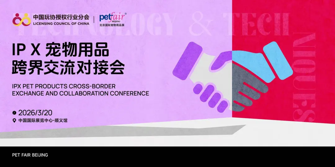 为推动 IP 授权与宠物用品产业深度融合、赋能行业高质量发展,3 月 20 日,由中国玩协授权行业分会、北京万耀雄鹰国际展览有限公司主办的“IP X 宠物用品跨界交流对接会”在中国国际展览中心举行。本次对接会立足宠物经济与情感消费双重风口,以文化创意赋能实体产业,以优质 IP 激活消费新场景,不仅为版权方拓展了宠物赛道新阵地,更为宠物用品企业提供了品牌升级与产品创新的抓手。