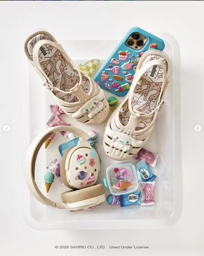 其实,以礼品起家的三丽鸥正是如此操作的,当它开始定义“可爱经济”时,这个“轻内容” IP 的拓展主要靠的就是大量的 IP 产品,通过零售赋能 IP,以全品类 IP 产品触达消费者,这里面包含授权合作产品,但更多的是三丽鸥自己打造的 IP 衍生品,从周边到玩具,从 3C 数码到服装配饰,从美妆日化到食品饮料,几乎无所不包,确保粉丝如果愿意可以自行打造一个三丽鸥“痛屋”。