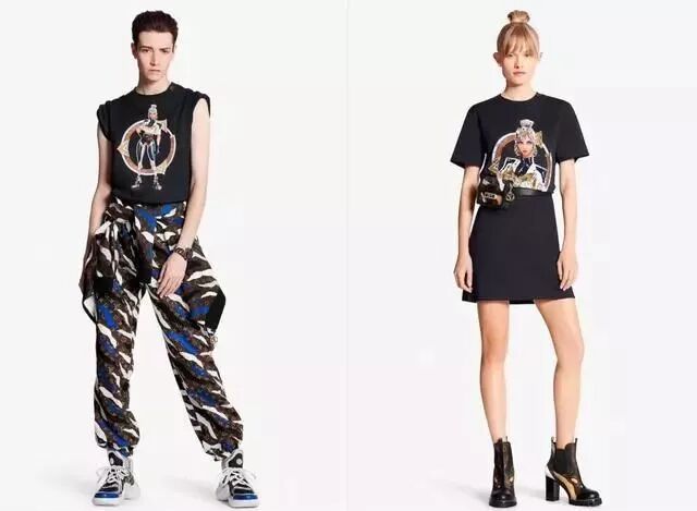 早在英雄联盟S9赛前,LV就为「召唤师杯」定制过专属LV奖杯箱,品牌女装艺术总监Nicolas Ghesquière更是为游戏角色中的奇亚娜设计限定皮肤。总决赛结束后,粉丝们期待的Louis Vuitton联名LOL主题系列也终于发布,系列包括男女装T恤、裤子、运动鞋、背包、配饰等。